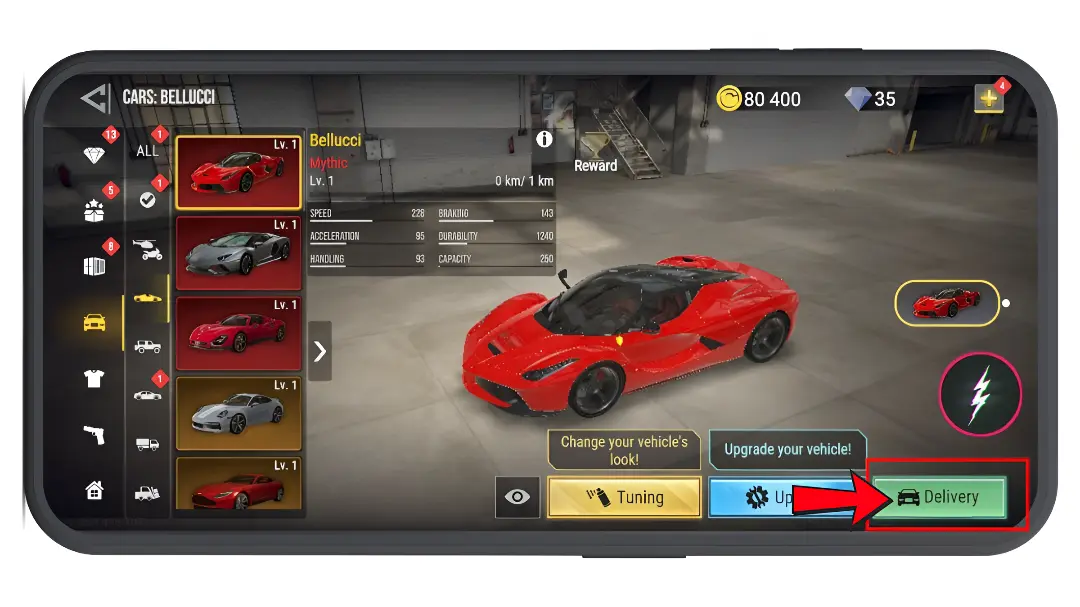 After selecting the car, tap on the “Deliver” button and choose the “Watch Ad” option.